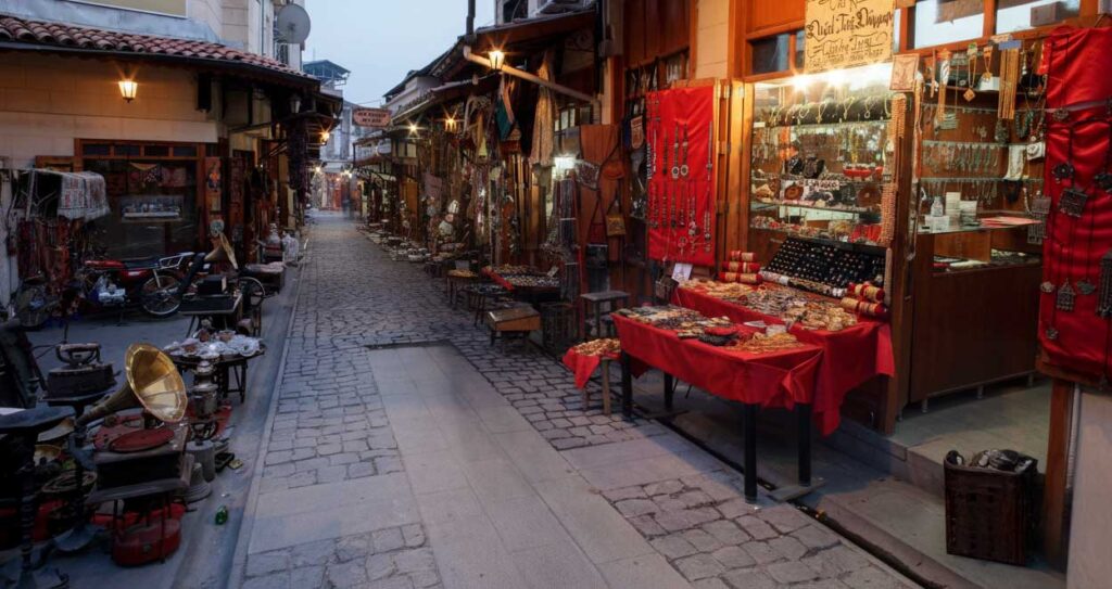 Kahvaltı sonrası şehir gezisi: Tahmis Kahvesi, Zincirli Bedesten, Almacılar Pazarı, çarşılar.